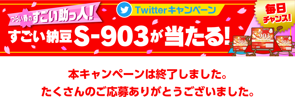「発売5周年記念!すごい納豆S-903がすごい当たる!キャンペーン」に参加される皆様へ