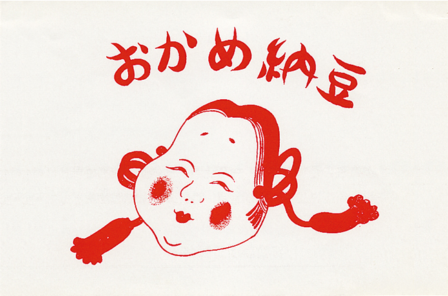 「おかめ納豆」というブランドは、昭和39(1964)年以前には全国に15〜20種類もあったといわれています。髙野英一は早稲田大学の広告研究会に所属していたころ、「おかめ納豆」のブランドマークの商標登録を考えついており、昭和39年7月30日、出願に踏み切りました。昭和42年11月、登録が認められ、以後、おかめ印がシンボルマークとなります。