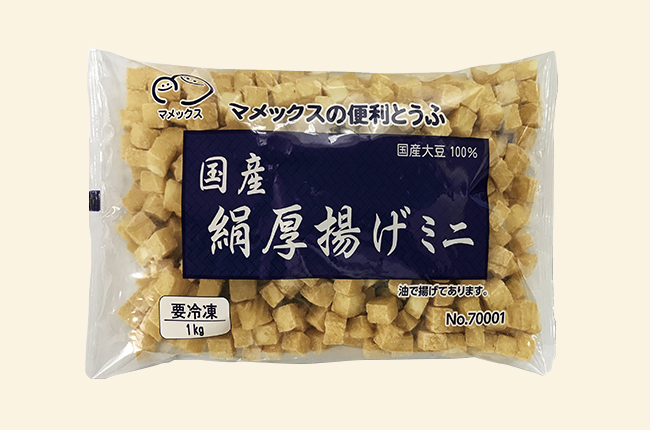 令和2年以降は「便利とうふ国産サイコロ500g」(左)と「国産絹厚揚げミニ」(右)を製造 -