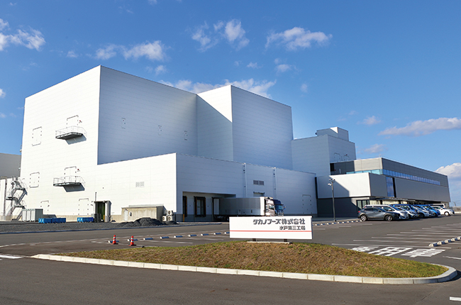 内食需要は高水準を保ち、当社はこれに応えて生産体制を増強するために茨城県笠間市の茨城中央工業団地に水戸第三工場を建設。令和2年11月に竣工して翌年1月に稼働しました。「20年後を見据えた新工場」をコンセプトに、自動化・省人化・省エネ化の最新設備を導入し、生産性向上を追求。博物館(タカノフーズ なっとくファクトリー)も併設しました。