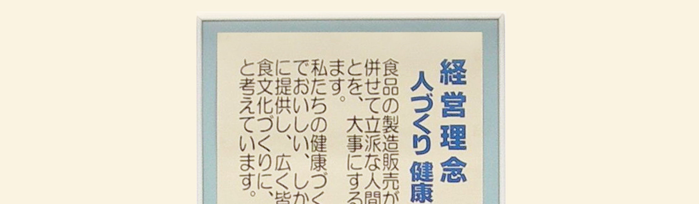 食品の製造販売が私たちの仕事ですが、 併せて立派な人間をつくり出していくことを、大事にする企業でありたいと思います。