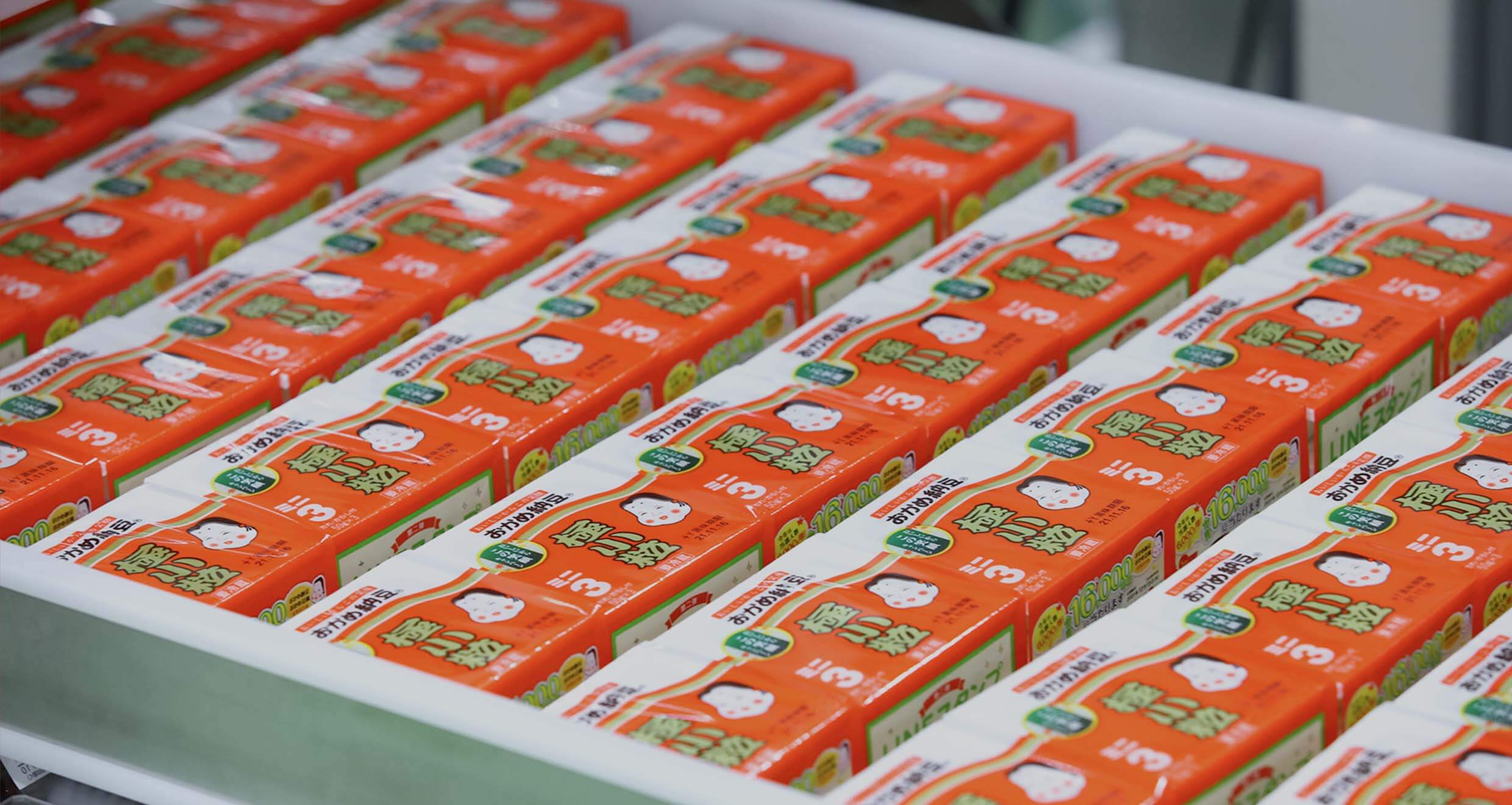 全国の工場では、毎日たくさんの納豆や豆腐を製造しています。多くのお客さまからご支持いただいているトップメーカーとして、“おなじみの味”を守りながら、製品を安定供給することが大切な使命です。より安全で、よりおいしく、より効率的な製品づくりを追求していくことも重要なミッション。お客さまの期待を超えていくために、工場は常に進化し続けています。