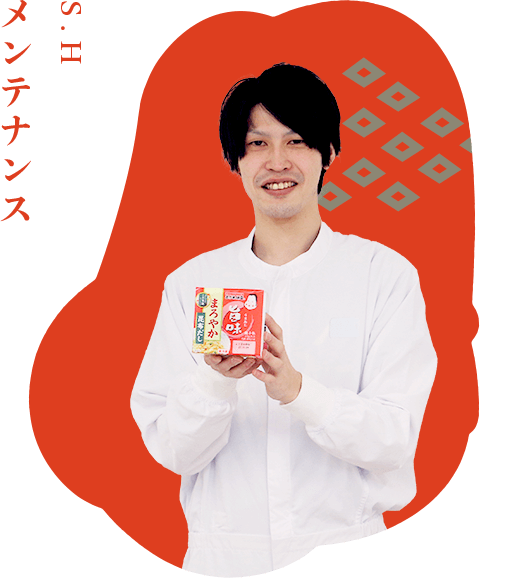 納豆や豆腐の製造設備の点検、保守・保全業務のほか、製品の安全性や設備の生産性を高める改善・改良、新規設備の導入などに携わります。機電系の知識を活かし、安全でおいしい商品づくりを支えます。