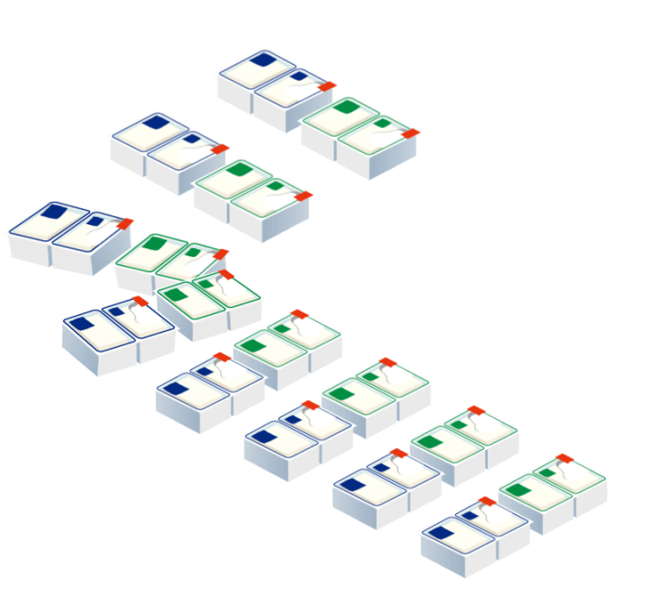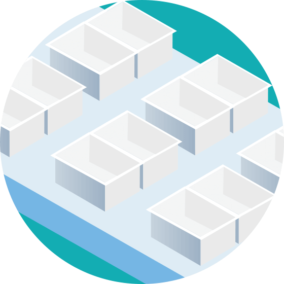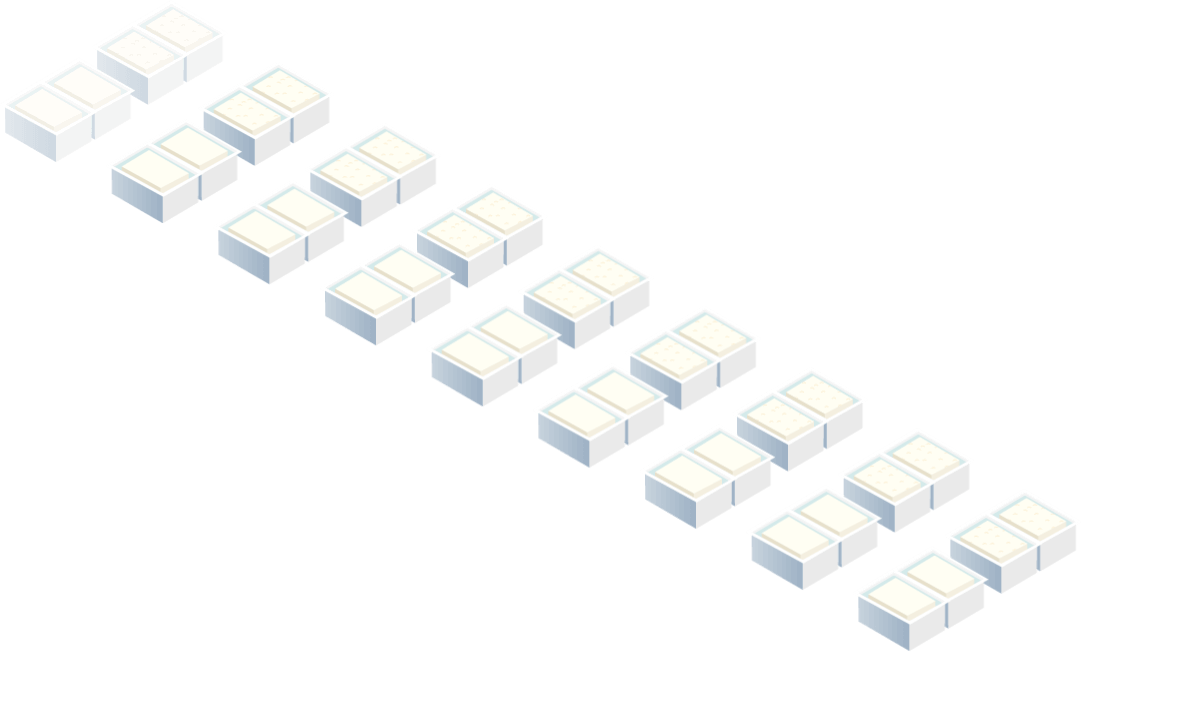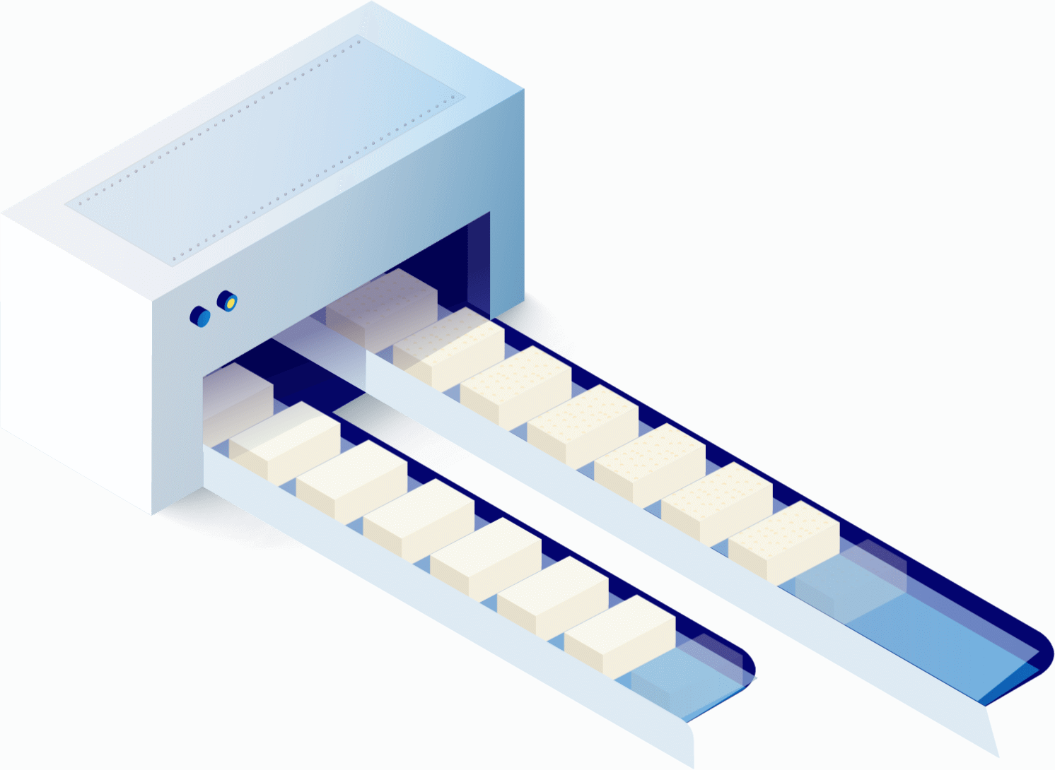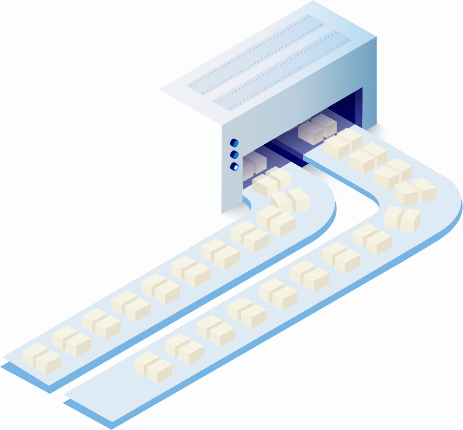 絹ごし豆腐は、カット・容器充填の工程になります。