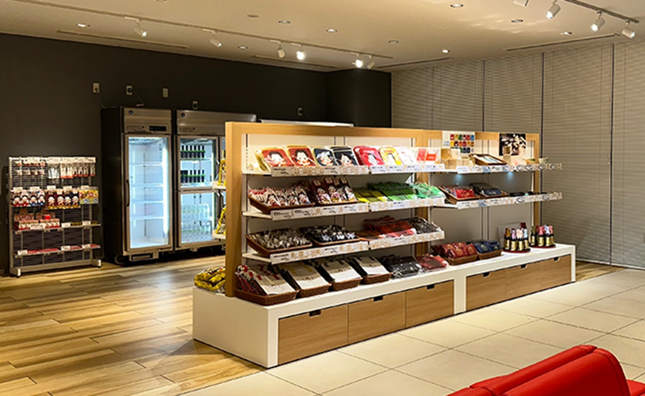A. 「なっとく!マーケット(直売店)」では、「おかめ納豆」のオリジナルグッズや納豆・豆腐、いろんなお土産を販売しています。