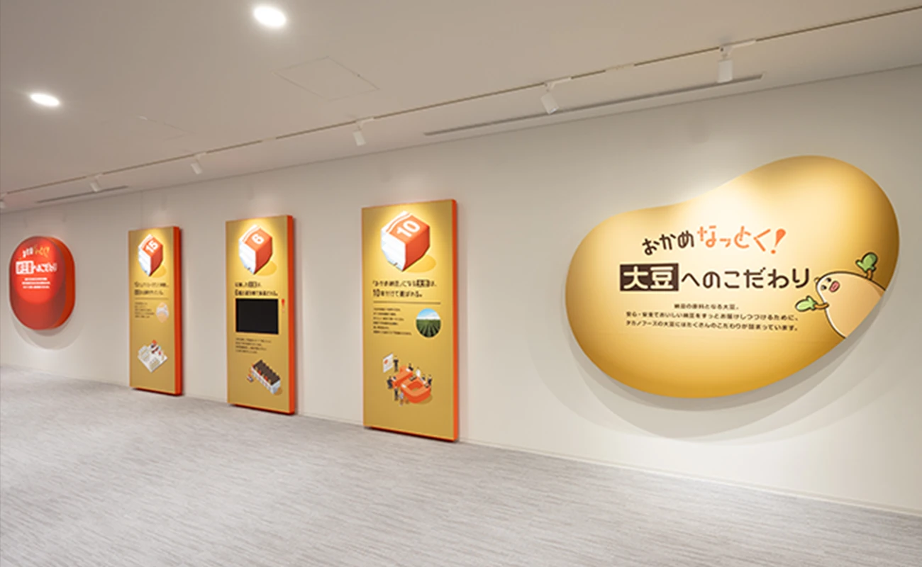 『なっとく!ファクトリー』では、“なんとなく”知っている納豆の良さや納豆の作り方を、親しみやすいキャラクターと一緒に“なっとく”に変えていただけるよう、わかりやすく伝える納豆工場ミュージアムです。