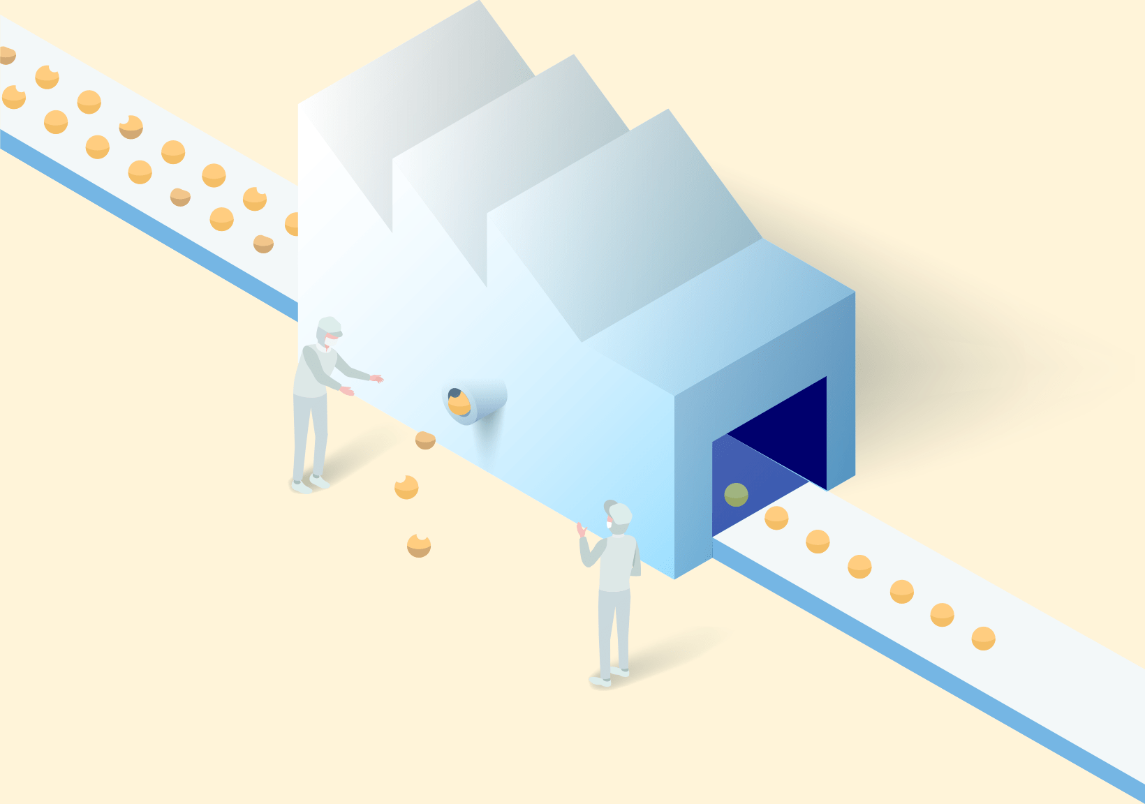 生産・流通・加工の各段階で遺伝子組み換え大豆が混じらないように分別管理を行います。その後、大豆選別センターで割れ豆、不良大豆を取り除いて、丁寧にチェックします。厳しいチェックに合格した大豆だけがタカノフーズの商品になります。