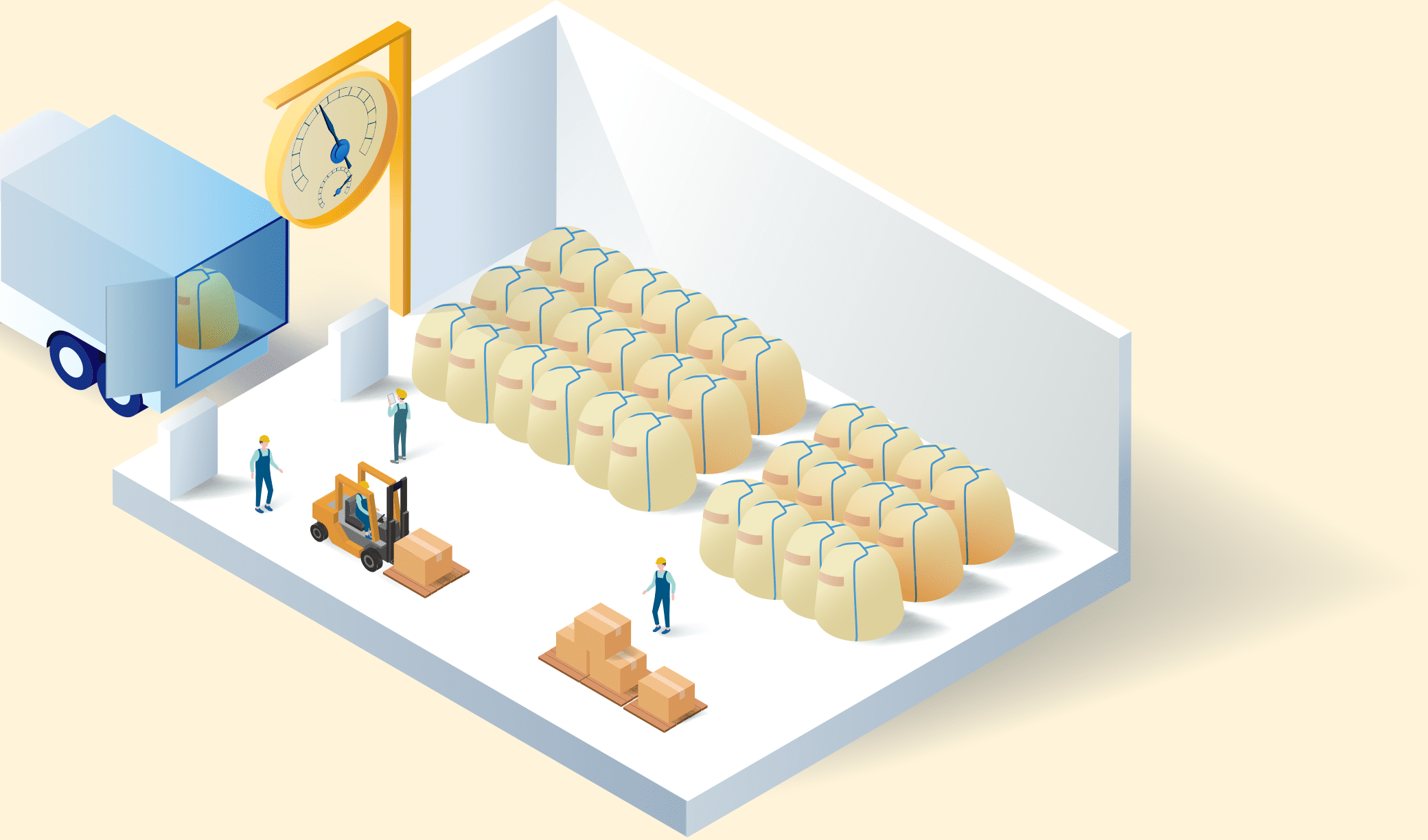 大豆の品質を守るため、管理の行き届いた倉庫内で15℃以下の一定の温度で保管しています。