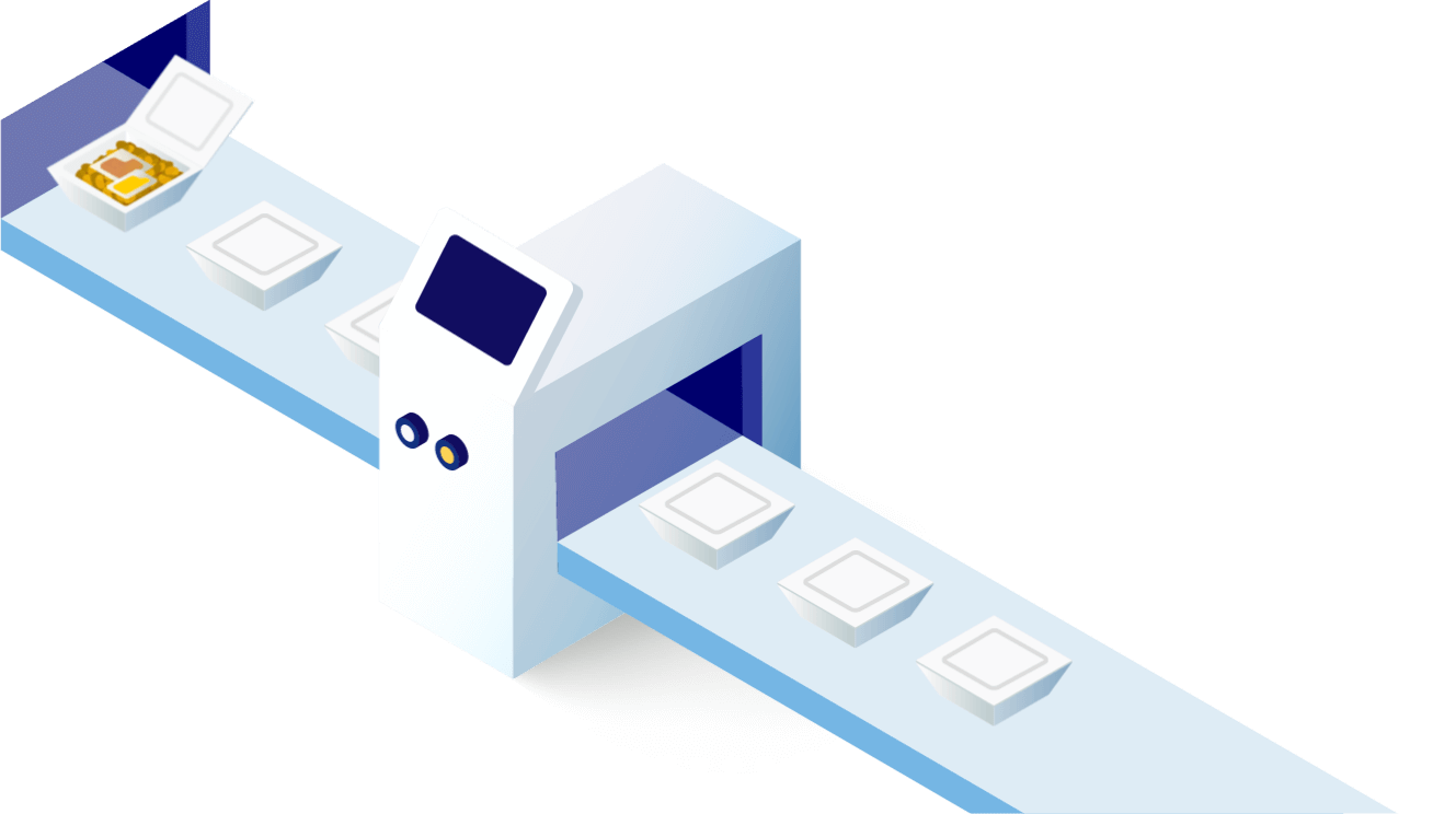 出来上がった納豆の容器にラベルをかけ、金属検知機で最終チェックを行います。