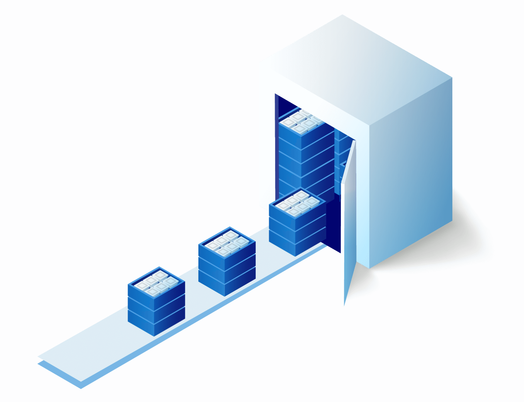 充てんされた後、「室」と呼ばれるコンピューター管理された発酵室に運ばれます。発酵室の温度は納豆菌が活発に活動できる40℃前後。大豆の粒形や菌の性質ごとに温度と時間のプログラムを組み、常に最適な条件の中で発酵させています。