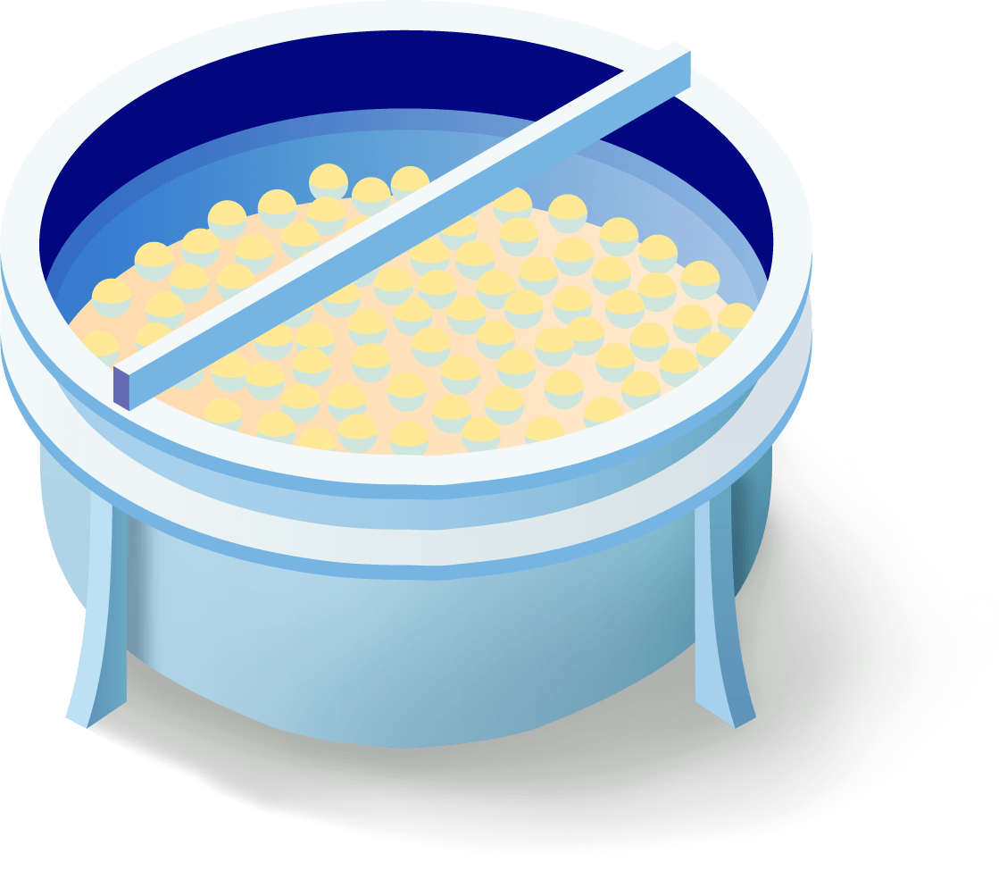 厳選された大豆を傷つけないよう水流で丁寧に洗浄します。自動洗浄機の水流でもみ洗いし、チリやほこり等をキレイに洗い流しています。