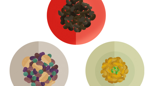 1.甘納豆はお菓子で、豆を砂糖で煮詰めたものです。