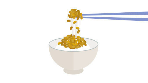 納豆のネバネバは、納豆菌がたんぱく質を分解してできたグルタミン酸を納豆菌がたくさんつなげてつくったポリグルタミン酸と、糖の一種であるフラクタンという物質からできています。
