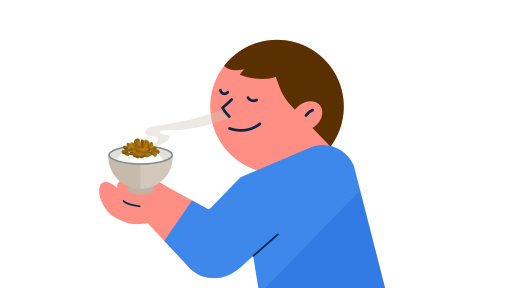 納豆のにおいは納豆菌が作りだすものです。納豆菌は大豆の成分を分解しながら増殖し、独特の粘りやにおいを作り出します。においの主成分はピラジン類、短鎖分岐鎖脂肪酸およびジアセチルです。製造後も日が経つにつれて少しずつ発酵が進みますので、においは徐々に強くなります。
