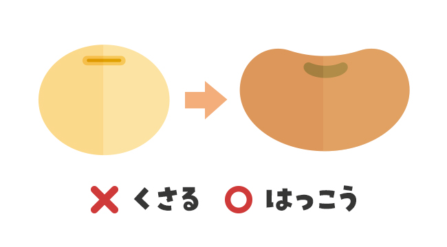 納豆(なっとう)はくさっているのではなく、大豆を「発酵(はっこう)」させて作る食べ物です。くさることも発酵(はっこう)させることも微生物(びせいぶつ)によって食べ物などが分解(ぶんかい)されることをいいます。