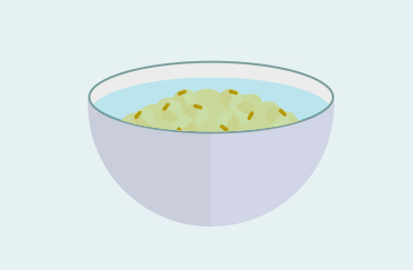 かき混(ま)ぜたあと、ラップをかけて、輪(わ)ゴムで止め、電子(でんし)レンジ【600W】で30秒(びょう)温めます。