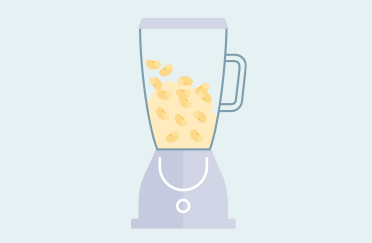 水につけた大豆を水といっしょにミキサーで約(やく)20秒すりつぶします。大豆が100gなら水は200cc。大豆をすりつぶしたものを生呉(なまご)といいます。