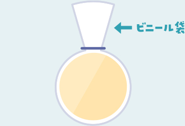 できるだけ空気(くうき)がはいらないように、ビニールの口をしばります。