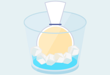 氷水(こおりみず)につけてよく冷(ひ)やします。