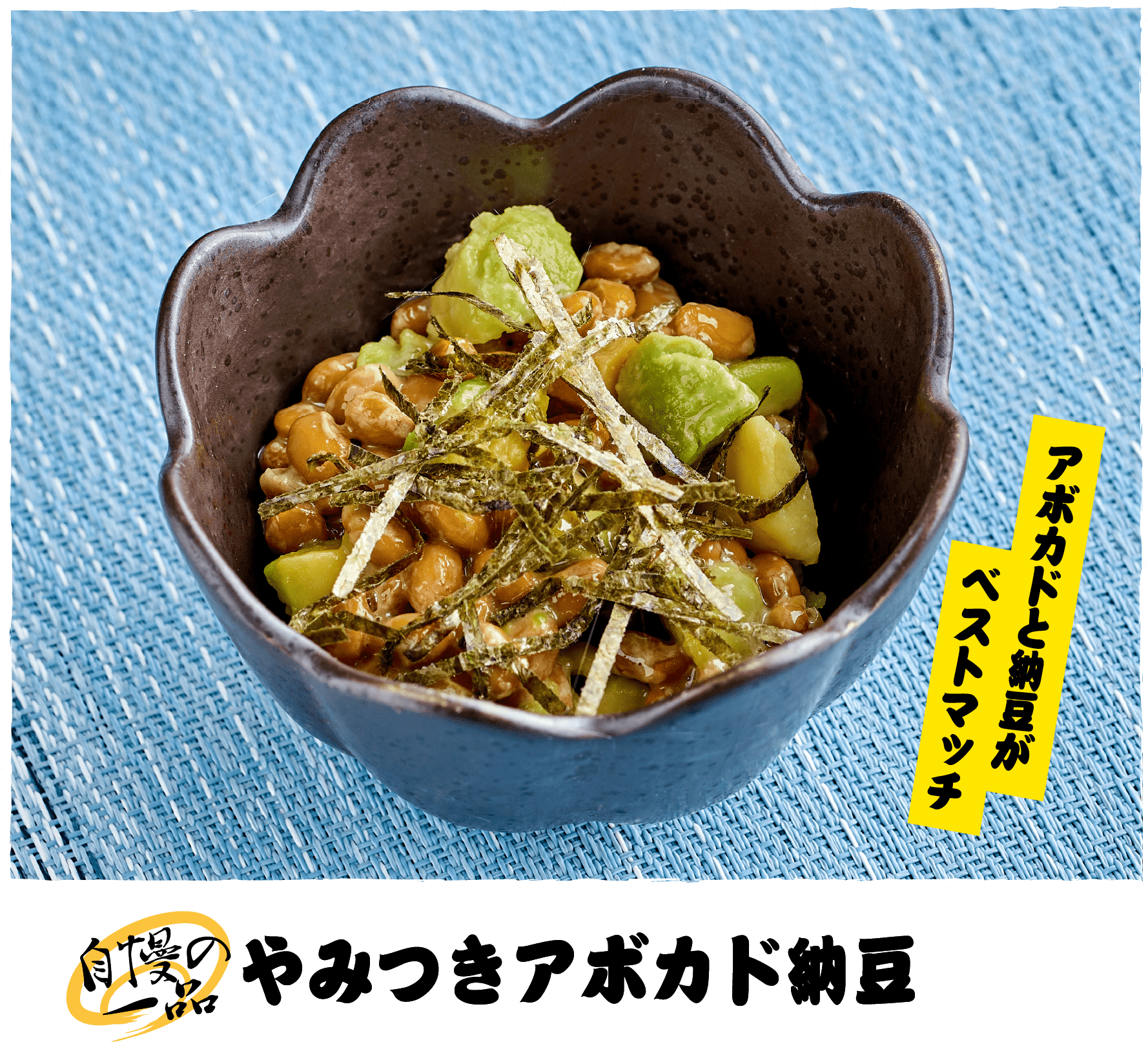 納豆、角切りしたアボカドに、付属の山わさびとタレ、めんつゆを混ぜ、刻みのりをのせる。
