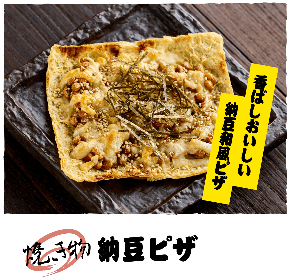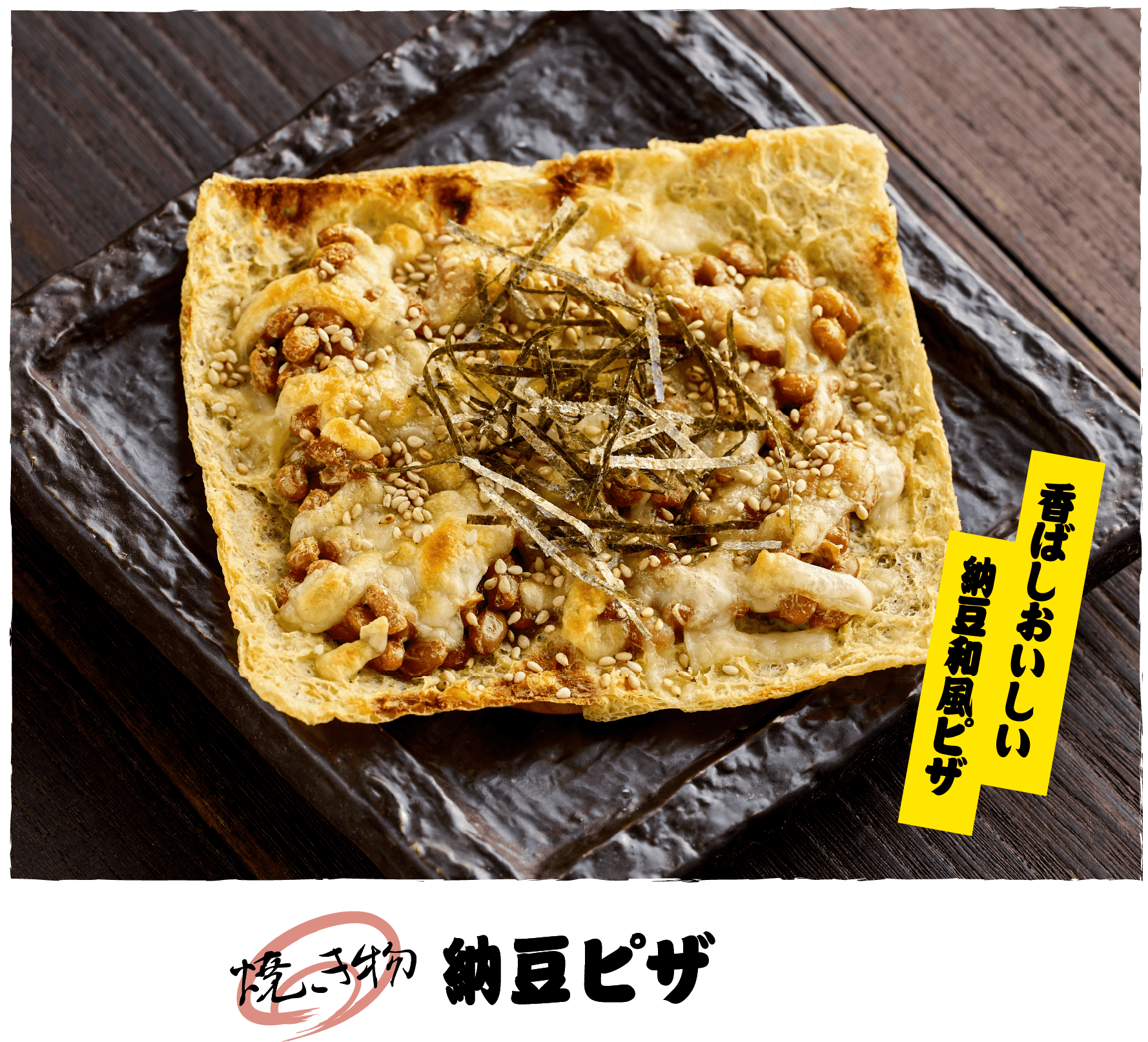 カリカリの納豆ピザに後のせ山わさびの風味がやみつき!お酒が進んじゃいますねぇ。