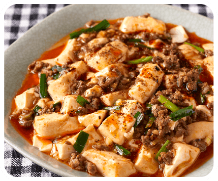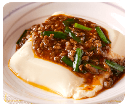 合わせておいた<A>を加えて炒め合わせ、とろみがついたら、豆腐にかける。小口切りにした万能ねぎをトッピングして完成。