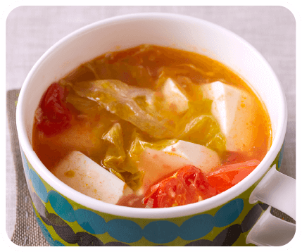 - 絹美人はキッチンペーパーに包んで耐熱容器に乗せ、電子レンジ600Wで2分加熱して冷まし、水切りする。