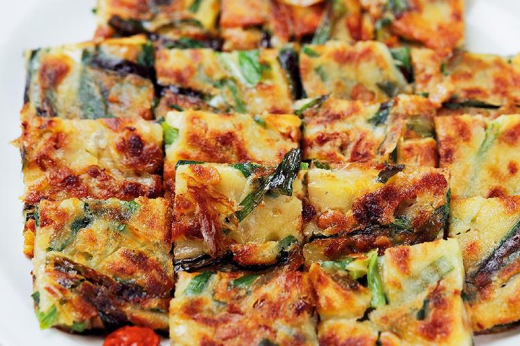 フライパンにごま油大さじ1を中火で熱し、2を流し入れ、平らにならす。こんがりと焼き色がつくまで2分ほど焼いてうら返す。ごま油大さじ1を生地のまわりから足して、2分を目安にこんがりと焼く。