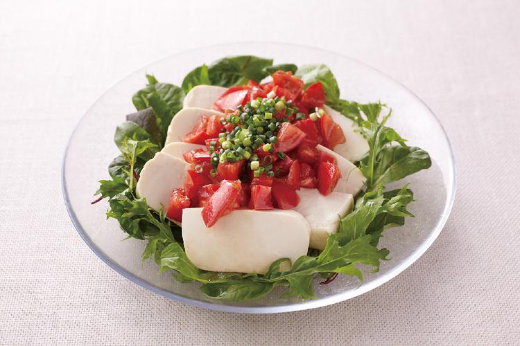 器にベビーリーフを敷き、豆腐を盛りつけ、3.のたれをかけ、万能ねぎをのせる。