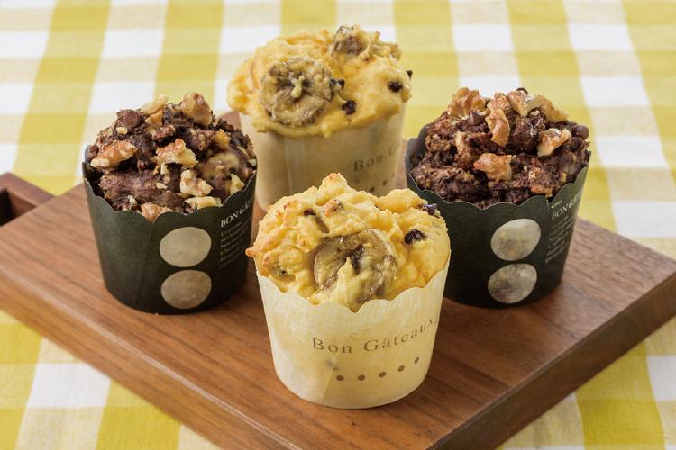 生地の半量にバナナを混ぜこみ、マフィンカップに入れる。