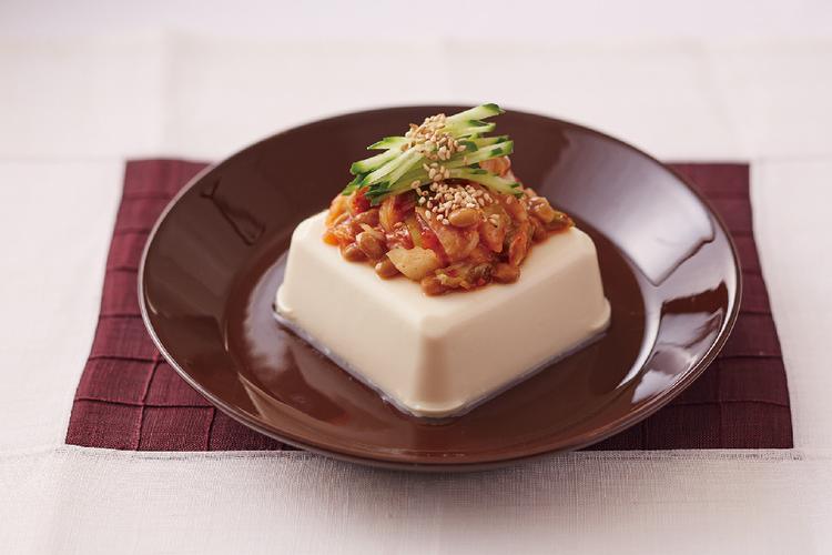 ごま香るキムチなっとうふ やっこ 納豆 豆腐 材料 (2人分) 豆腐 2パック 納豆 1パック 納豆のたれ・からし 各1袋 キムチ 50g ごま油 小さじ2 白ごま 小さじ1 きゅうり 1/5本 作り方 キムチは粗めに刻む。きゅうりはせん切りにする。 ボウルに納豆、添付ののたれ・からしを混ぜ、キムチを入れてサッと混ぜる。 豆腐の上に2.をのせ、きゅうりを上に盛りつけて白ごまを散らし、ごま油をかける。
