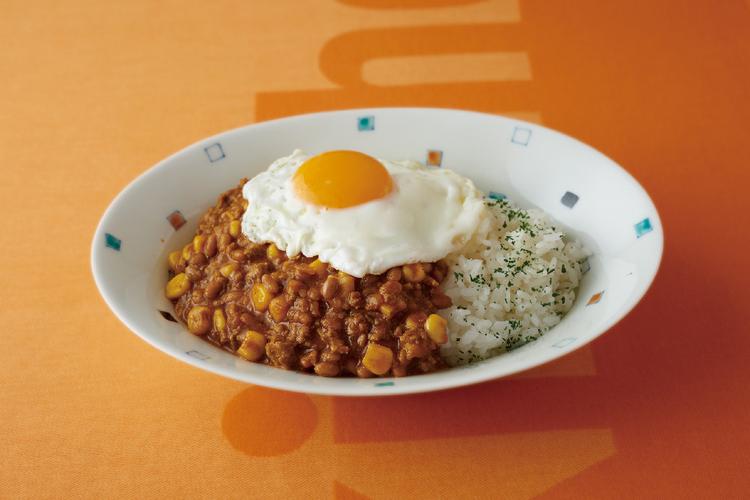 器にご飯をよそい、4.を盛りつけ、目玉焼きをのせ、乾燥パセリを散らす。