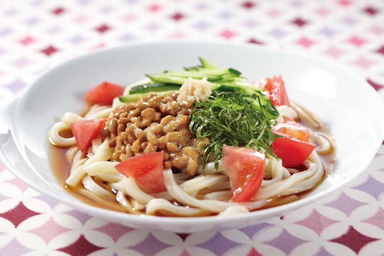 夏野菜冷やし納豆うどん 15分 麺 納豆 材料 (2人分) 納豆 2パック 添付のたれ 2袋 冷凍うどん 2個 きゅうり 2/3本 トマト 1/3個 大葉 3枚 おろし生姜 10g めんつゆ(3倍希釈) 80ml 水 240ml 作り方 納豆はたれと混ぜておく。 きゅうりはせん切り、トマトは小さめの乱切りにする。大葉はせん切りにし、水にさらし、水をきる。 冷凍うどんは表示通り加熱し、冷水にとり、水をきっておく。 器にうどんを盛りつけ、水で希釈し、冷やしておいためんつゆをかけ、納豆、きゅうり、大葉を盛りつけ、おろし生姜をのせる。