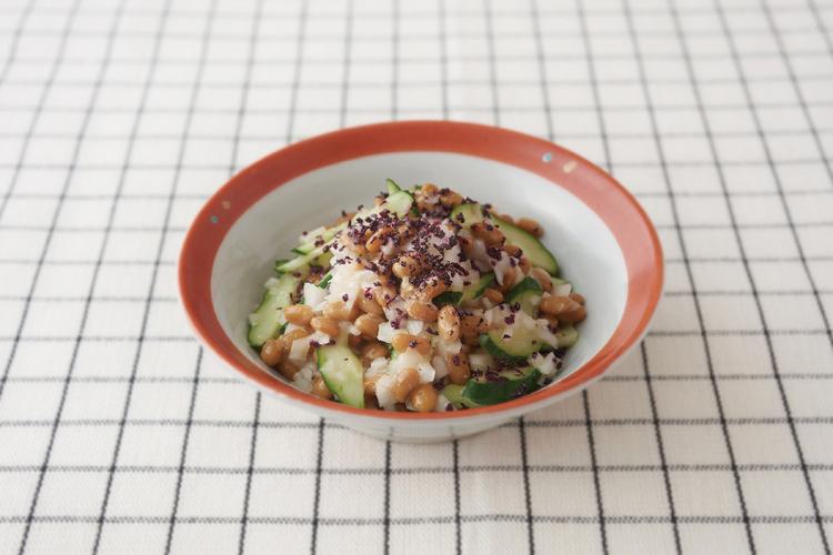 新玉ねぎ納豆しそ風味 和える 副菜 納豆 材料 (1人分) 納豆 1パック 添付のたれ・からし 1袋 新玉ねぎ 40g きゅうり 1/6本 しそふりかけ 小さじ1 作り方 納豆に添付のたれ・からしを混ぜ合わせる。 新玉ねぎはみじん切りにする。きゅうりは笹切りにする。 1.と2.を混ぜて、器によそい、最後にしそふりかけをかける。 ワンポイントアドバイス 新たまねぎはやわらかくて、みずみずしく、甘みがあるので、そのままでも食べやすいのが特徴です。旬のおいしさを楽しみましょう!