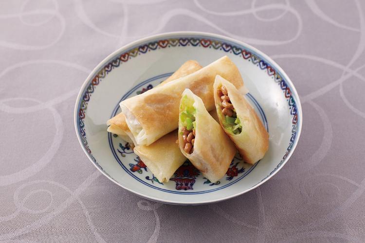 納豆チーズの焼き春巻き