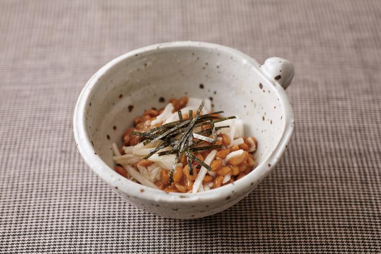 長いもサクサク納豆 和える 副菜 納豆 材料 (1人分) 納豆 1パック 添付のたれ 1袋 長いも 30g しょうゆ 小さじ1 刻みのり 適量 作り方 長いもはせん切りにする。 ボウルに納豆、添付のたれを入れ混ぜ合わせ、1.を加えてサッと和え、しょうゆで味をととのえる。 ワンポイントアドバイス ネバネバ食材の長いもと納豆でカラダの中から元気に!