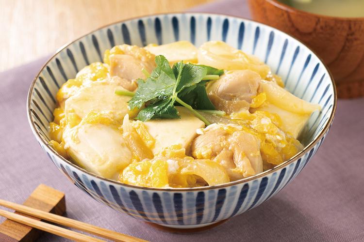 豆腐の親子丼 15分 582kcal ※エネルギーは1人分です。 煮る・蒸す ご飯もの 豆腐 材料 (2人分) 豆腐 130〜150g 鶏もも肉(6等分) 80g 玉ねぎ(薄切り) 1/4個 卵 2個 みつ葉(長さ3cm) 適量 ごはん 360g 【A】 めんつゆ(ストレート) 80cc 水 60cc 作り方 フライパンにAを入れて火にかけ煮立ったら、豆腐、鶏肉、玉ねぎを加えて、鶏肉に火が通ったら、卵を流し入れてとじる。 器にごはんを盛り、1.をかけ、みつ葉をのせる。 ワンポイントアドバイス 市販のめんつゆはメーカによって味わいが変わるので、量は調整してください。