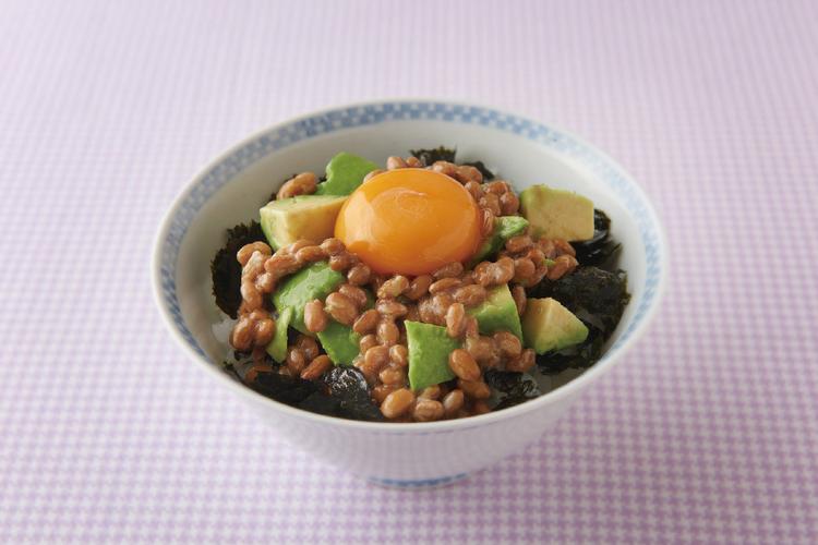 アボカド納豆丼(卵黄のせ) 和える ご飯もの 納豆 材料 (1人分) 納豆 1パック 添付のたれ・からし 1袋 ご飯 茶碗大1杯 アボカド 1/2個 もみのり 1/4枚 卵黄 1個 わさび 少々 ※お好みでしょうゆ 作り方 アボカドは半分に切り、種を取り、2cm角程度に切る。 納豆と添付のたれ・からしを混ぜ合わせる。 1.と2.をさっくりと混ぜる。 丼にごはんをよそい、もみのりを散らし、3.をのせて、最後に卵黄を中央にのせる。 ※お好みでしょうゆをかける。 ワンポイントアドバイス アボカドには「ビタミンエース」と呼ばれる、ビタミンA、C、Eが含まれています。豊富な栄養をたくさん摂りバランスの良い食事を!