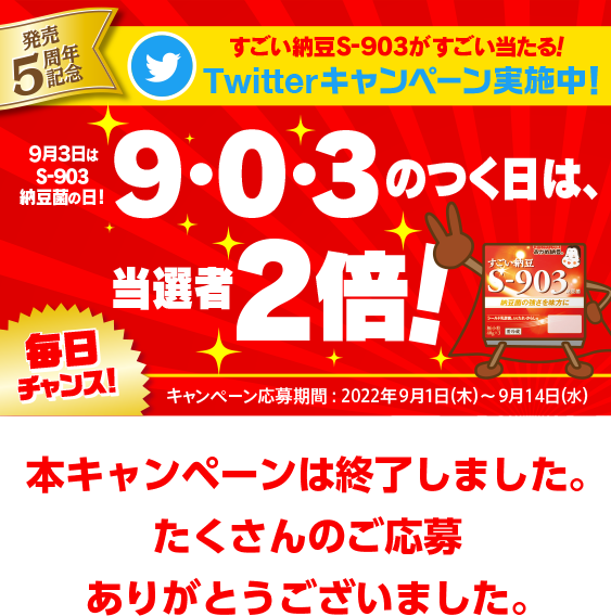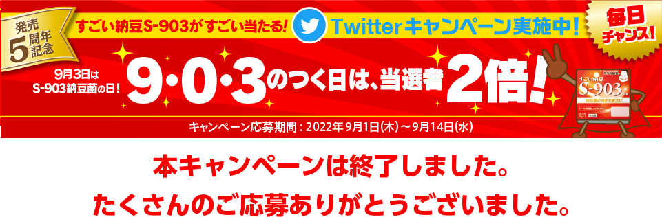 「発売5周年記念!すごい納豆S-903がすごい当たる!キャンペーン」に参加される皆様へ