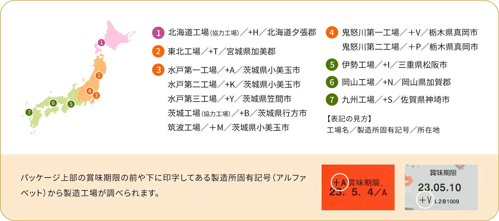 タカノフーズではパッケージや容器に印字してある賞味期限やロット番号から、どのような原材料を使用して、いつ、どこの工場のどの製造ラインで製造し、どの包装ラインで包装されたかを追うことが可能なトレーサビリティシステムを構築しています。また、それらの印字につきましては、現場と品質管理によるダブルチェックを行い間違ったものが出荷されないようにシステム化されています。
