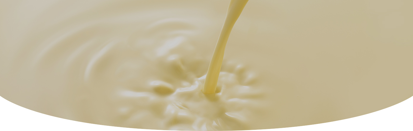 しぼりたての豆乳の難しいところは、豆乳が熱いうちににがりを入れること。なぜなら、温度が高いとにがりを入れた直後から固まってしまいムラが出てしまうからです。しかし、試行錯誤の末、おかめ豆腐ではすべての商品でしぼりたての熱い豆乳でもムラなく固める製法を開発しました。