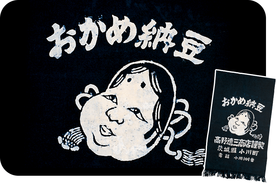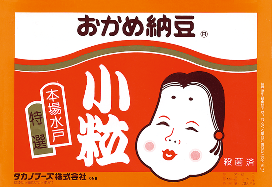 機械化によって生産量が大きく伸び、消費量もどんどん増えた時期。当時「おかめ納豆」というブランドは全国に15~20種類ほどもあったため、タカノフーズでは写真のマークを商標登録し、認められました。おかめブランドが信頼のブランドへと成長する第一歩となりました。