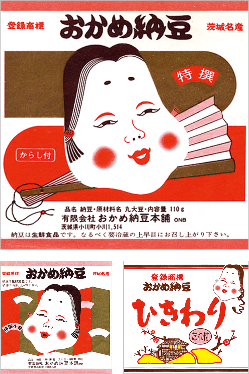 時代とともに、パッケージやテレビコマーシャルなどに登場し、おかめマークも少しずつ変化してきました。